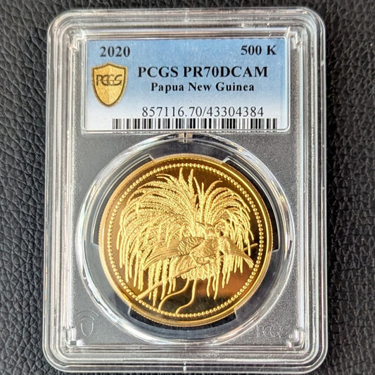 金貨【最高鑑定 2020年 極楽鳥金貨 PCGS PR70DCAM 鑑定 】パプアニューギニア 500K パラダイスバード 純金 31.1g 1oz 説明書 木製箱付き