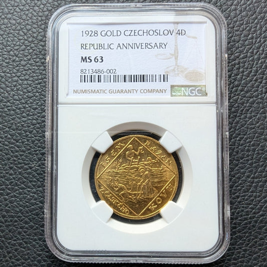 金貨 鑑定 1928年 チェコスロバキア 建国10周年記念 4ダカット金貨 鑑定 NGC MS63 GOLD ゴールド アンティークコイン